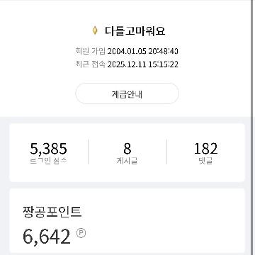 2004년에 가입해서 많은 시간을 눈팅 또는 댓글만 달다보니 아직도 소위네욯ㅎ 진급에 욕심은 없었는데 마지막이라니 코앞인 승진한칸만 하자 싶네요ㅋㅋ그동안 내 청춘 짱공에서 잘놀았습니다 다들 고맙습니다!!!!