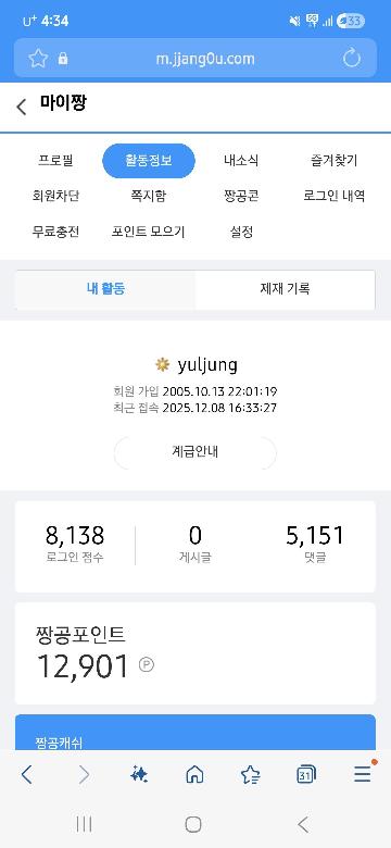 짱공 어르신들 추억을 위해 예전 짱공유 2003년 UI/UX 잠깐 확인 할수 있는 방법을 공유 드립니다. 클릭 https://web.archive.org/web/20250000000000*/jjang0u.com 2025년 12월 15일 짱공유 문을 닫아도 위 사이트에서 추억을 돌아볼수 있습니다.(대부분 이미지는 깨져 있음) 눈팅족이였지만 짱공유 덕분에 전 잘 쉬다 갑니다.짱공유 감사 합니다. (2003년 : 포르노 공유 좀 하지 마세요.)
